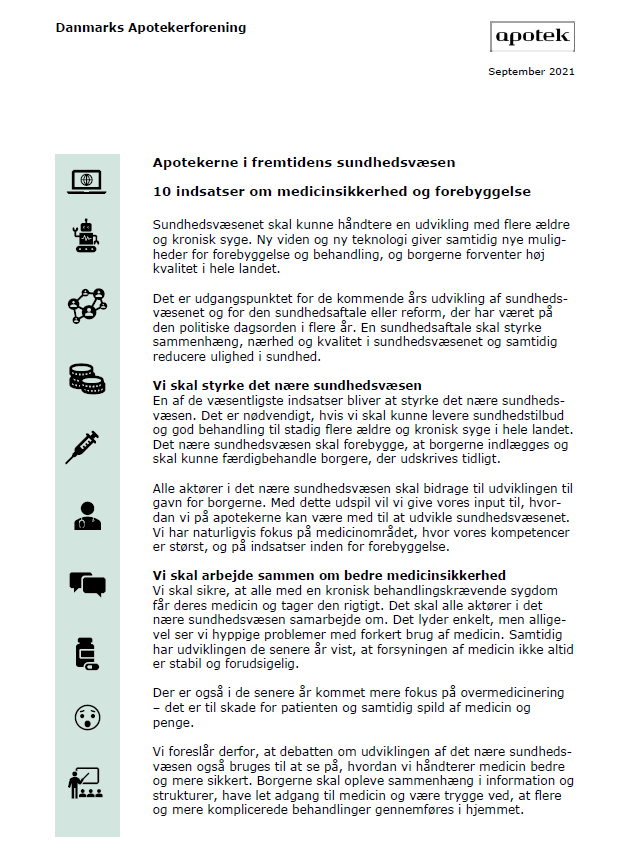 Vi ser også et potentiale for, at apotekerne kan bidrage yderligere til vaccinationsindsatsen på en række områder. Det viser erfaringerne fra apoteker i andre lande, som også tilbyder vaccination mod hepatitis B, stivkrampe, difteri, hepatitis A, mæslinger, kighoste, helvedesild og COVID-19 m.v.